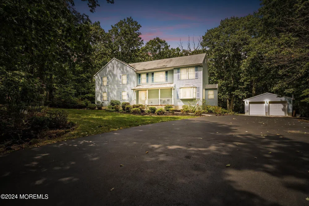 Your home search ends here! Discover this spacious 5 bedroom 3 bath custom built colonial centrally located in desirable Plumsted Township! Walkway surrounded by landscaping leads you to the covered front porch which is perfect for a pair of rocking chairs. Enter the tiled foyer with a coat closet. Through the foyer to the left, wood floors flow into the family room with a wood burning fireplace surrounded by floor to ceiling stone tiling. From the foyer to the right leads to a full bathroom, laundry room, a large storage pantry, mudroom and a first floor den which can serve as a playroom, office, or possibly a 5th bedroom. The large eat-in kitchen boasts a hanging L-shaped island with barstool seating, electric range, double oven, stainless steel dishwasher, and recessed lighting. Upstairs find four oversized bedrooms. The master bedroom features a wood burning fireplace surrounded by stone tiling, large walk-in-closet, and ensuite with double sink, jacuzzi tub, and stall shower. Off the mudroom, find a second entrance off the patio. Andersen sliding glass door off the kitchen leads to the 16x21 deck which overlooks the cleared and spacious yard which backs to woods. Additionally, this home features 2-zone heat and AC, a 12x12 storage shed, 2-car detached garage with a 14x24 overhang, alarm system, and has been freshly painted. Schedule a private showing to see the endless ways this house can become your home! Home Warranty included!